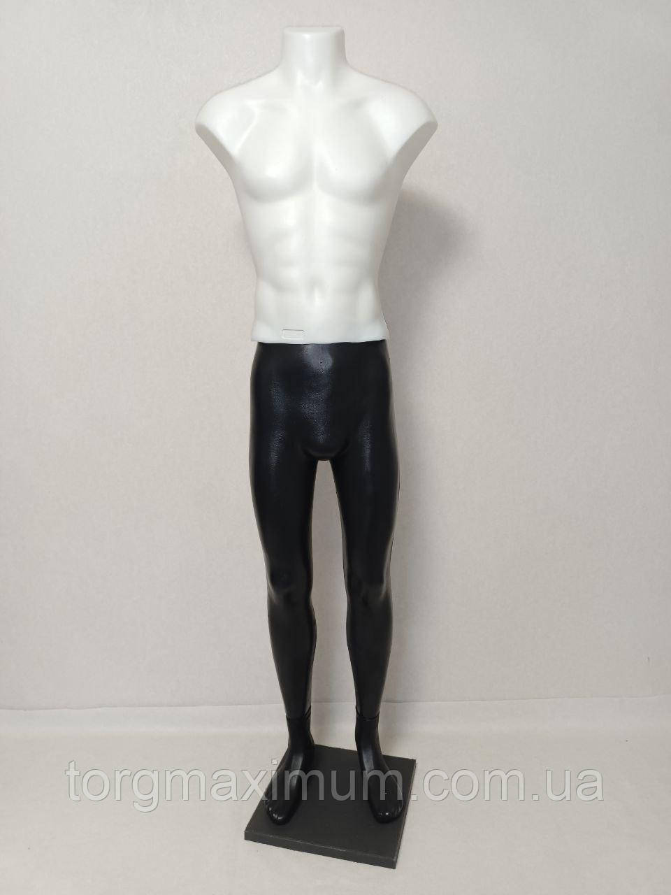 Манекен чоловічий збірний (білий торс/чорні ноги) на ПВХ-плиті