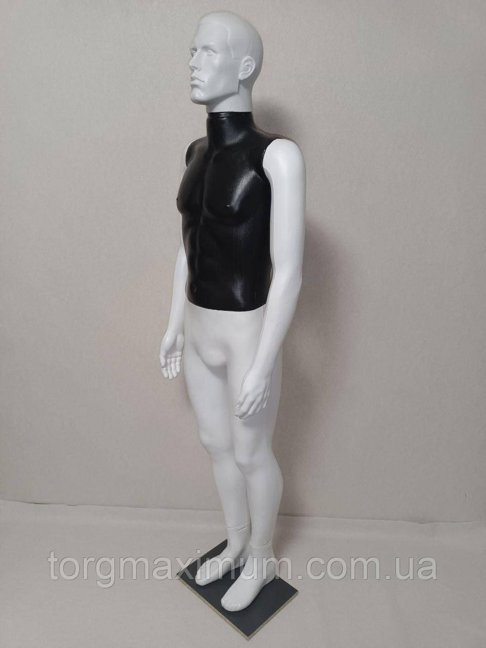 Манекен чоловічий "Сенсей" білий з чорним торсом на ДВП