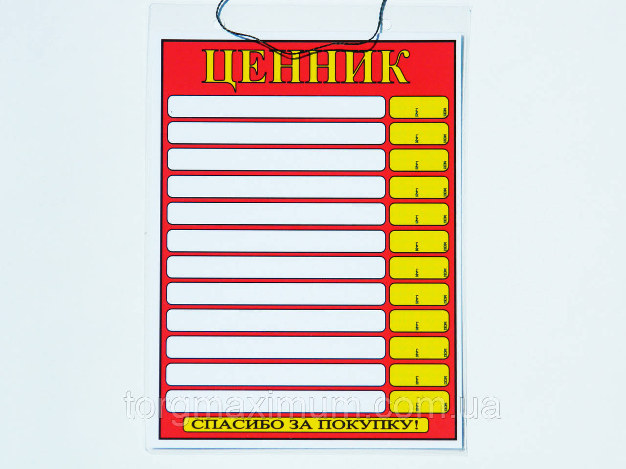 Інформаційна табличка "Ценник" має дванадцять полів, де можна маркером вказати найменування й ціну товару.